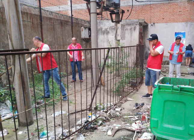 全體黨員志愿者身著紅馬甲,組織有序,分工明確,有的手拿撿拾器和塑料袋,對小區(qū)綠化帶、地面雜物和衛(wèi)生死角進(jìn)行了清潔打掃,有的手拿小鐵鏟對粘貼在墻上的小廣告進(jìn)行了清除,有的推著小車將樓道內(nèi)的雜物運(yùn)走。時(shí)值盛夏,烈日當(dāng)頭,氣溫達(dá)到36度以上,志愿者們被熱浪包圍,汗水濕透了衣衫,卻沒有一個(gè)人放松懈怠,大家不怕臟,不怕累,干勁十足,毫無怨言。一個(gè)多小時(shí)后,在志愿者們的齊心協(xié)力下,將小區(qū)打掃的煥然一新,徹底解決了小區(qū)存在的臟、亂、差問題,居民們紛紛點(diǎn)贊。