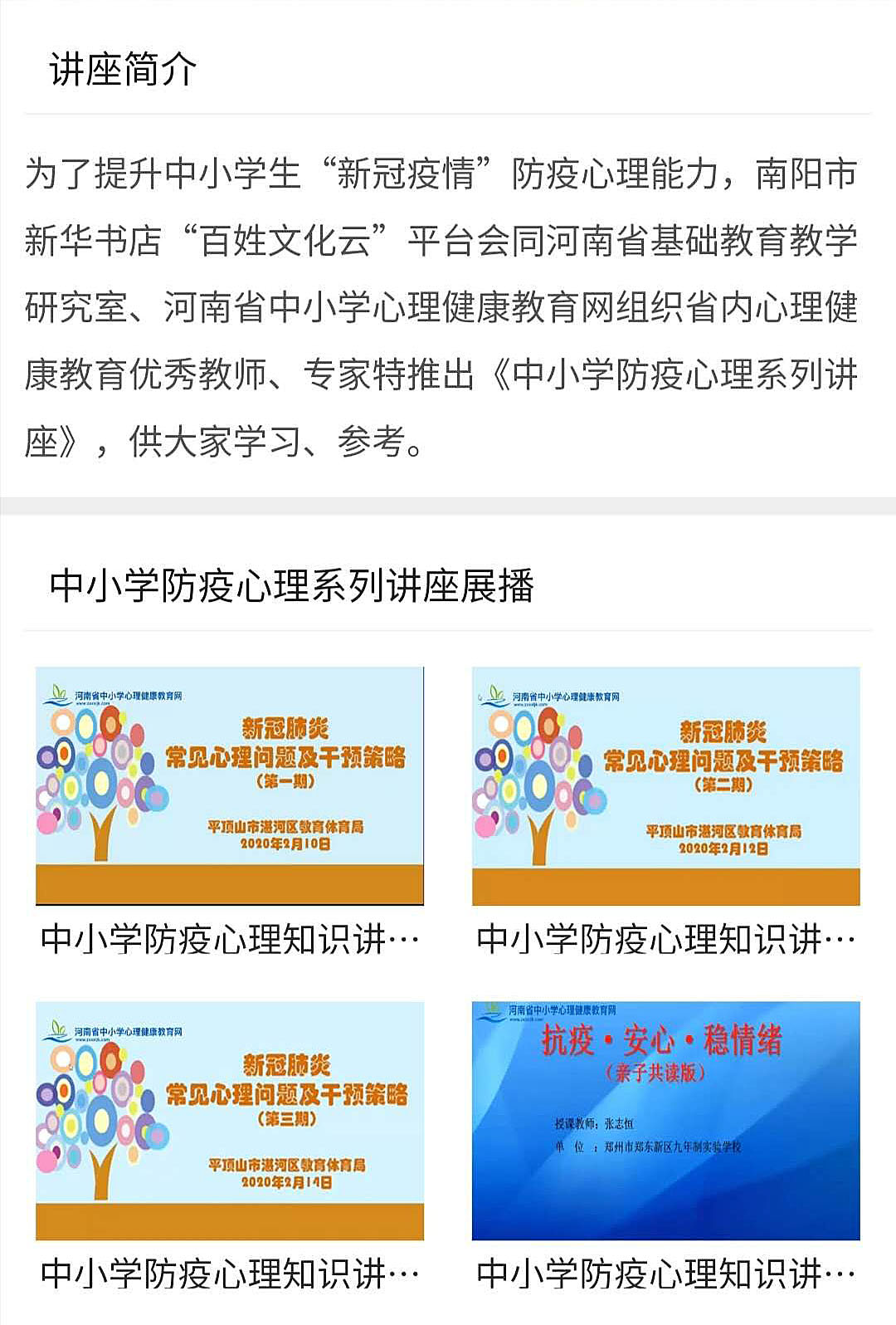 《中小學(xué)防疫心理知識(shí)講座》上線百姓文化南陽(yáng)云