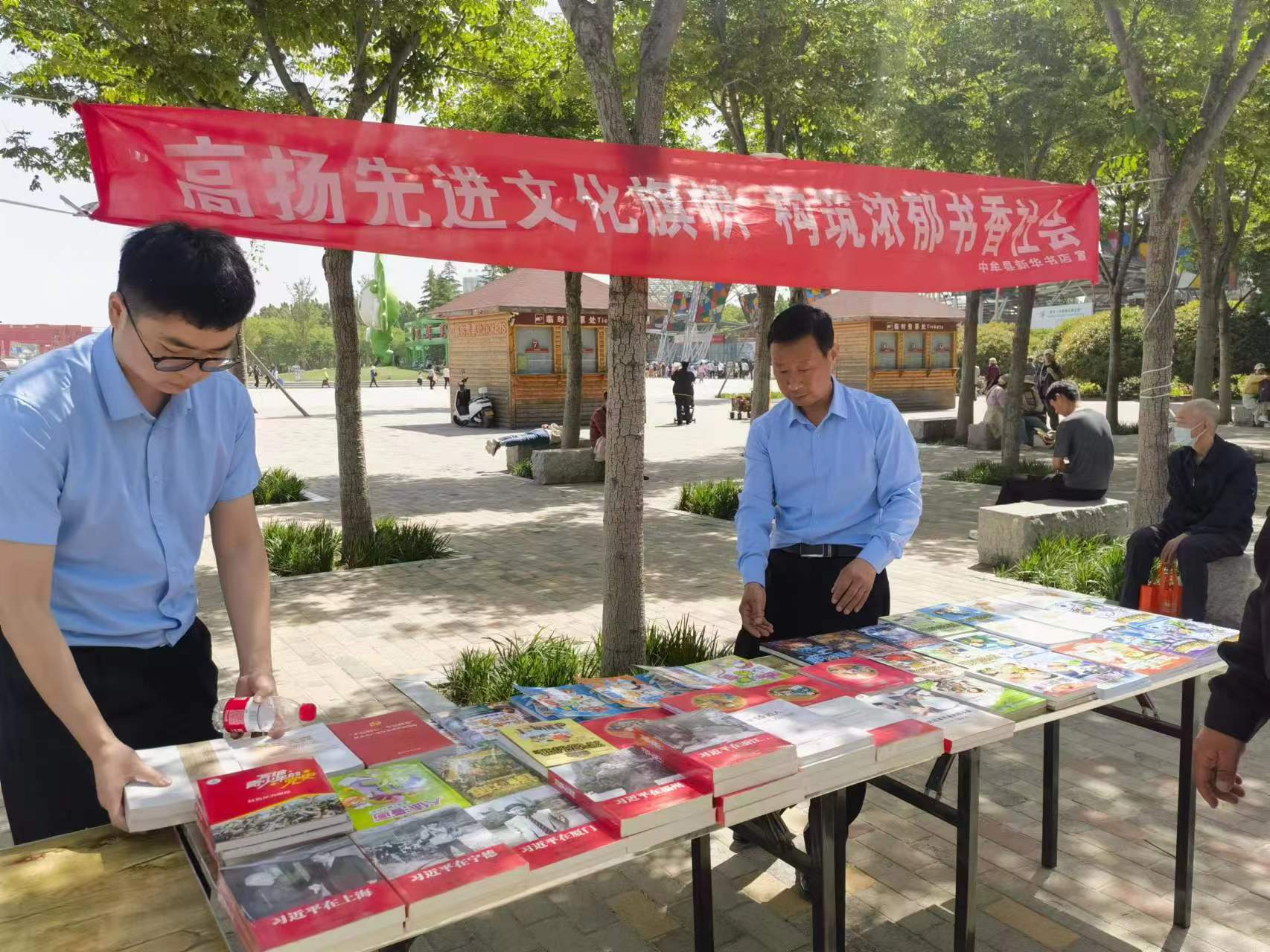 5月1日清早,中牟縣店中興路店的幾名營業(yè)員已經(jīng)來到了綠博園景區(qū)內(nèi),熟練地支起簡易展臺,整齊擺放好了圖書。書展吸引了晨練的人們,大家紛紛駐足翻閱,營業(yè)員張春興熱情地向讀者們介紹著每本書。