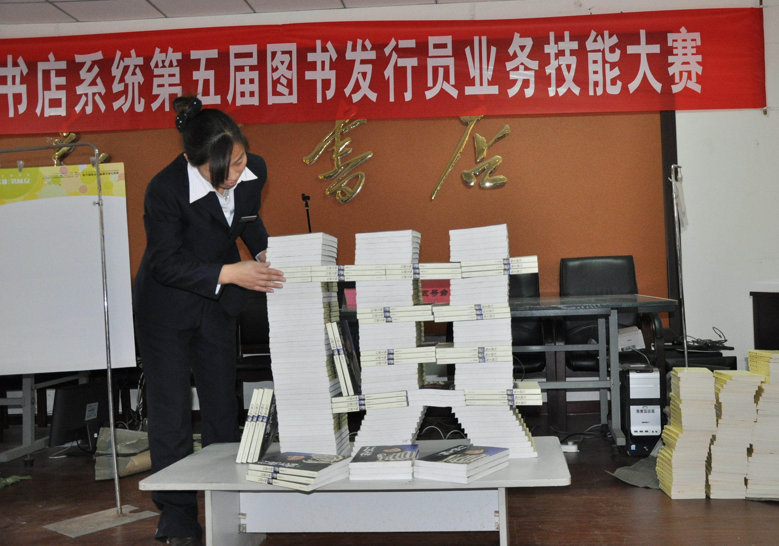 此次圖書發(fā)行員技能大賽是市總工會和新華書店第五次聯(lián)合舉辦技能大賽,與住屆大賽相比,今年的比賽難度和準備工作量增加了,可選手們的自信心和熟練程度卻一點沒減。在比賽現(xiàn)場,當裁判員的開始指令發(fā)出后,臺下選手啞雀無聲,選手們一個個都能鍵指如飛、緊張熟練地將規(guī)定內(nèi)容輸入電腦,現(xiàn)場只有“嗒嗒嗒”的敲擊鍵盤的聲音,在圖書推介比賽項目中,每位選手都能結(jié)合自己推介的圖書特點,向現(xiàn)場觀眾進行全面、詳細的推介介紹,贏得了大家熱烈的掌聲,售書連續(xù)作業(yè)主要考核比賽選手的操作準確度和連慣性,選手們都能做到計價、收款、開票、包扎四個過程一氣呵成,規(guī)定五分鐘的比賽操作,最快的選手僅用了兩分多鐘就全部完成;在圖書造型項目中,比賽選手各顯神通,充分發(fā)揮自己的想象能力,精心設計、“建造”出別出心裁的造型:有宏偉穩(wěn)固的高塔、有具有詩意的小橋流水、青蛙戲水、有氣勢宏大的古城建筑、也有設計巧妙的龍舟,還有用圖書拼出的文字“十八大”等,有的圖書造型文化氣息濃厚,有的造型突現(xiàn)時代特征,給人以強烈的視覺沖擊力,全面體現(xiàn)了圖書的文化產(chǎn)品特點。
