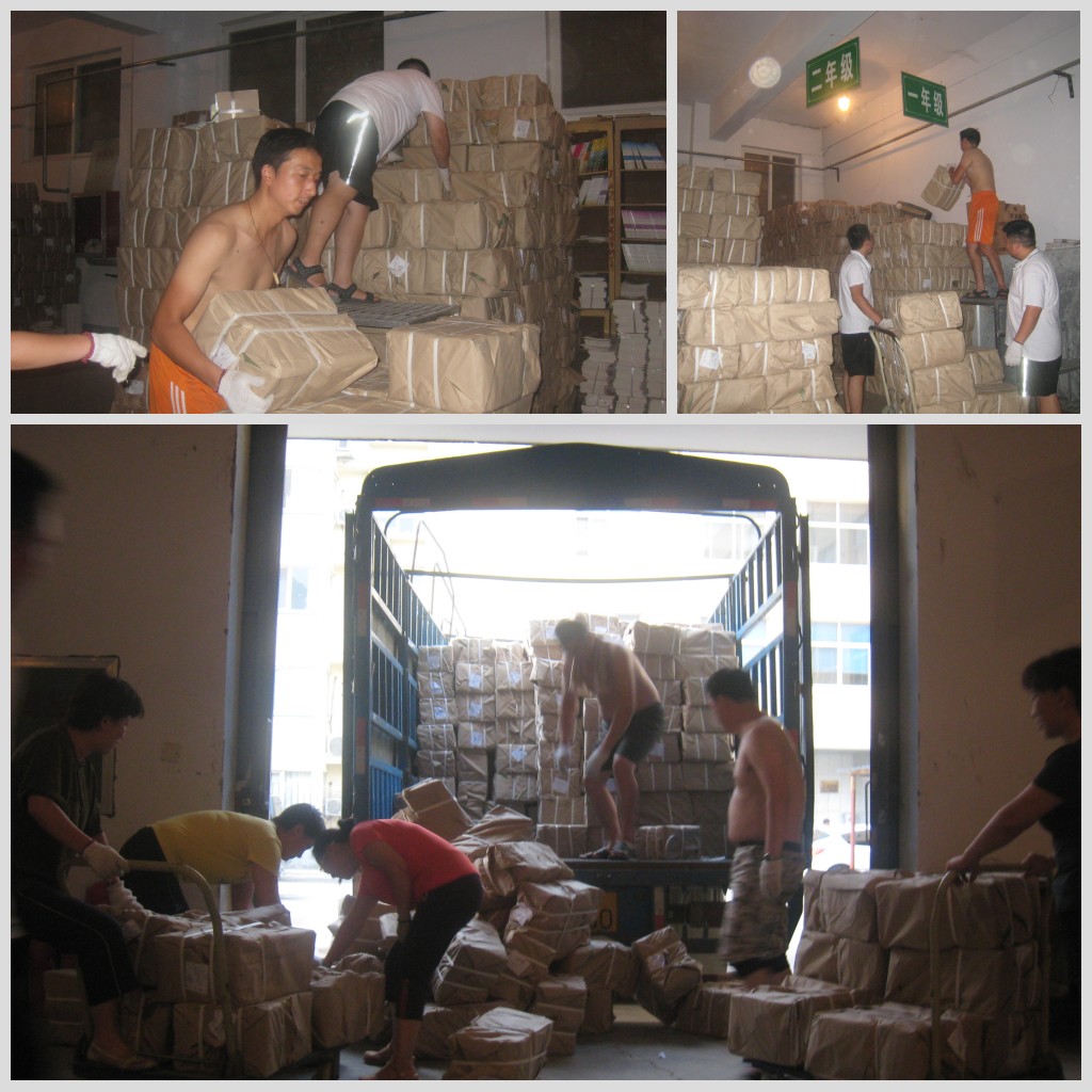 目前,2013秋季教材的發(fā)運(yùn)工作已經(jīng)步入了高峰期,為了達(dá)成“課前到書,人手一冊(cè)”的目標(biāo),衛(wèi)輝市店業(yè)務(wù)科全體員工加班加點(diǎn),犧牲節(jié)假休息時(shí)間,頂著高溫?zé)崂嘶蛘弑┯暌u擊等惡劣天氣,全身心投入到教材、教輔的發(fā)運(yùn)工作中。雖然大家臉頰上冒著汗珠,甚至有的光起了膀子,但樂此不疲的勁頭展現(xiàn)了朝氣蓬勃、團(tuán)結(jié)向上的精神面貌。據(jù)該店員工表示,等到中小學(xué)生開學(xué)時(shí),手捧一本本嶄新的教材,滿心幸福的笑聲充盈著整間教室,我們?cè)倏嘣倮垡彩侵档玫模?