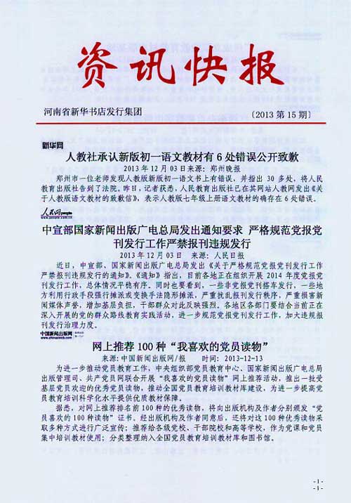 來源:河南省新華書店發(fā)行集團有限公司  作者:河南省新華書店發(fā)行集團有限公司  發(fā)布時間:2013/12/13 16:19:39  閱讀次數(shù):7068