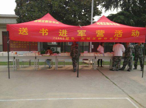 為了積極響應(yīng)2014年河南省“全民閱讀”活動(dòng)的號(hào)召,營(yíng)造文明社會(huì)、書(shū)香社會(huì)的文化氛圍,倡導(dǎo)全民閱讀的生活方式,宛城區(qū)店開(kāi)展了“送書(shū)進(jìn)軍營(yíng)”展銷(xiāo)活動(dòng)。