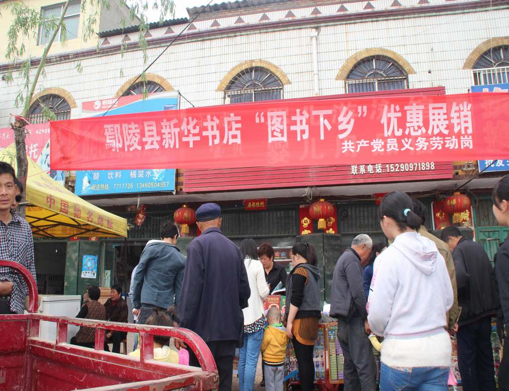 為推動(dòng)黨的群眾路線教育實(shí)踐活動(dòng)的深入開(kāi)展,積極倡導(dǎo)“全民讀書(shū)月”活動(dòng),日前,鄢陵縣店黨的群眾路線教育實(shí)踐活動(dòng)小組成員到鄢陵縣馬欄鎮(zhèn)擺攤售書(shū),為農(nóng)民送上精神食糧。