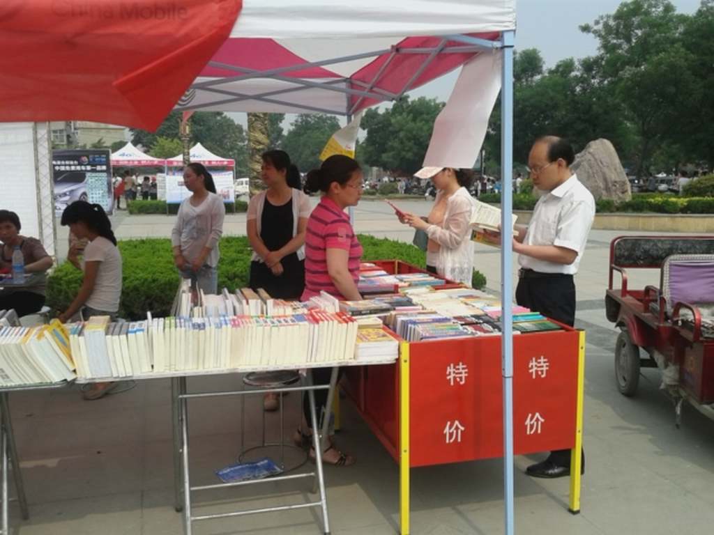 輝縣市店在深入開(kāi)展黨的群眾路線教育實(shí)踐活動(dòng)中,為營(yíng)造書香社會(huì)的文化氛圍,弘揚(yáng)尊重知識(shí)的精神風(fēng)尚,緊密結(jié)合書店實(shí)際,開(kāi)展豐富多彩的自選動(dòng)作。日前,該店組織了新華書店黨員服務(wù)隊(duì),開(kāi)展流動(dòng)售書活動(dòng),通過(guò)流動(dòng)售書服務(wù),掌握了廣大讀者的購(gòu)書需求。