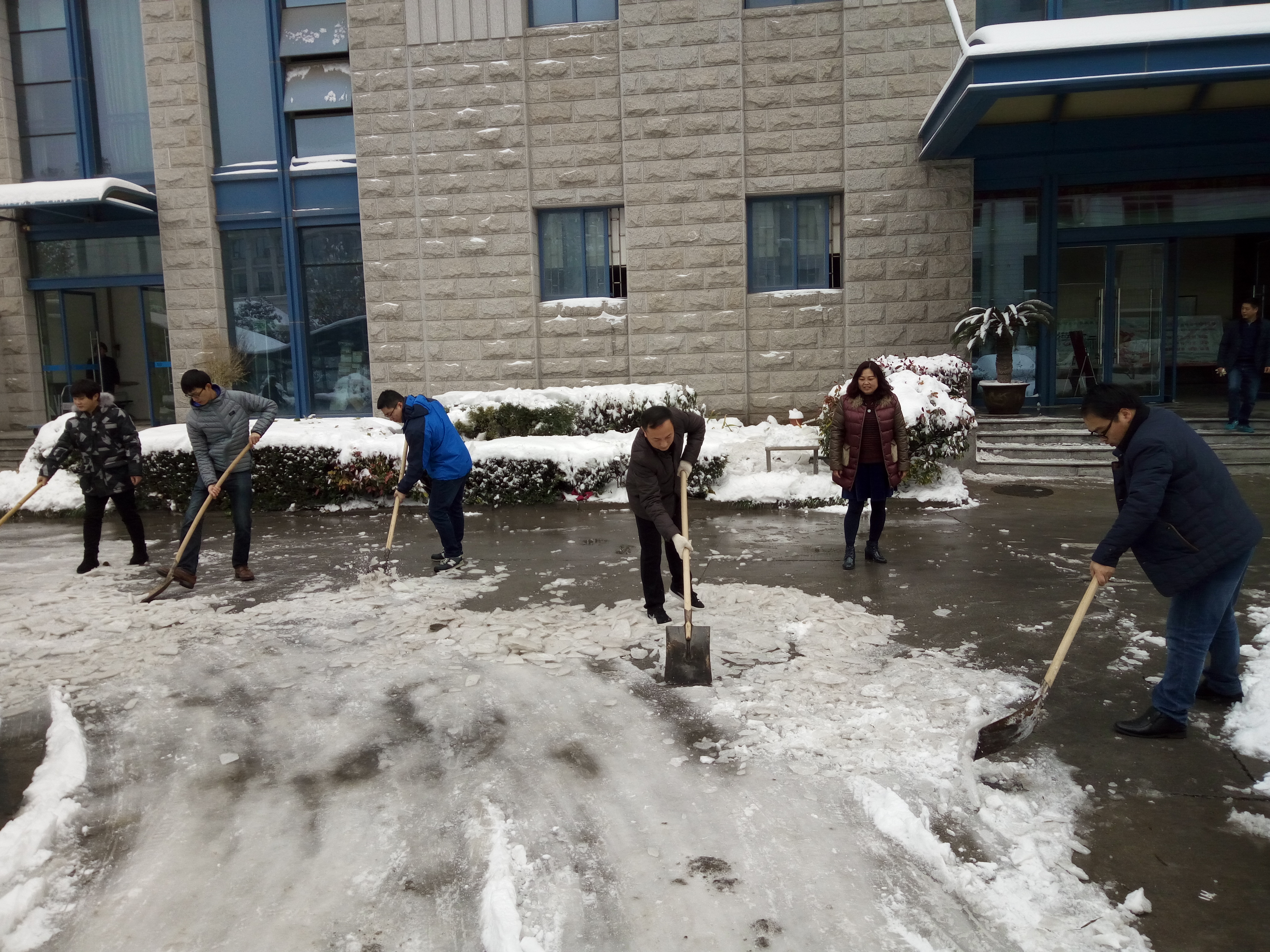 11月22日,大雪席卷鄭州,形成較厚積雪,帶來出行不便。第二日清晨,發(fā)行集團(tuán)領(lǐng)導(dǎo)和各部室員工克服交通困難,早早趕來,鏟冰掃雪,及時(shí)清障,確保了公司院內(nèi)道路通暢。